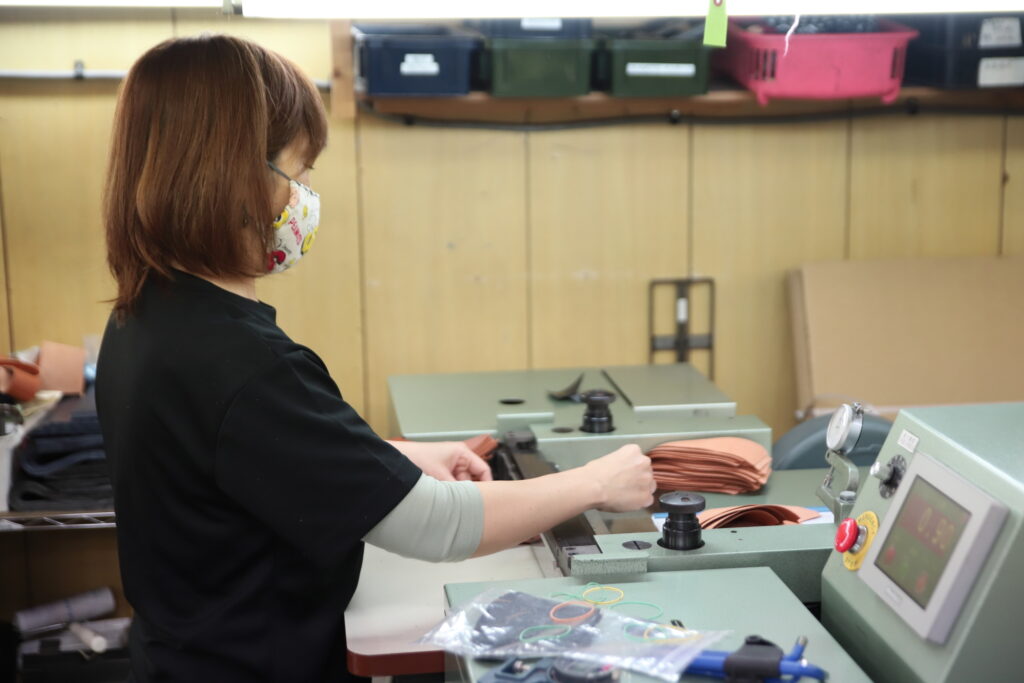 工房にはたくさんの機械があり、ただ単に革を切って、ミシンを走らせるだけでなく、工程ごとに役割を持った機械と職人の手が互いに支えあいながら進んでいて、その現場をそばで見ていると、「奥が深いなぁ。」と感じました。
