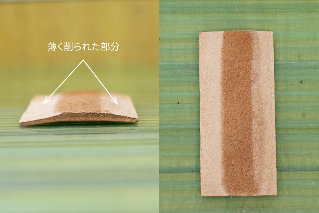 - コバの仕上げ部分:均一になるよう精密に漉く