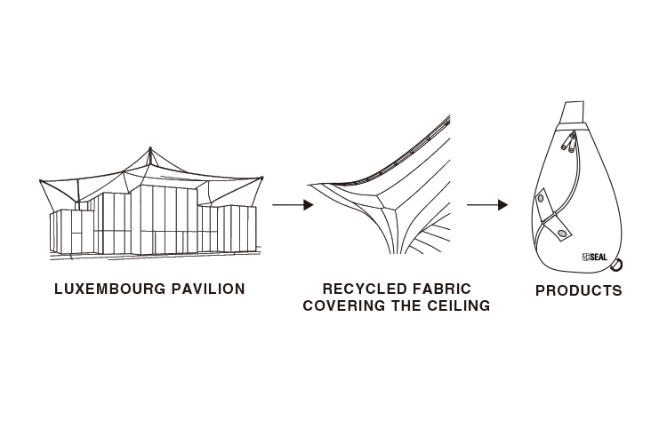 具体的には、ルクセンブルクパビリオンで使用される資材を再活用し、バッグとして生まれ変わらせるという取り組みです。一度役目を終えたものに新たな価値を与え、別の形で再び使ってもらう。言葉にするとシンプルですが、実際に形にしていくには多くの工夫と試行錯誤が必要でした。それでも、自分たちの技術と経験を活かしながら、一つひとつ丁寧に製作していく過程は非常にやりがいのあるものです。